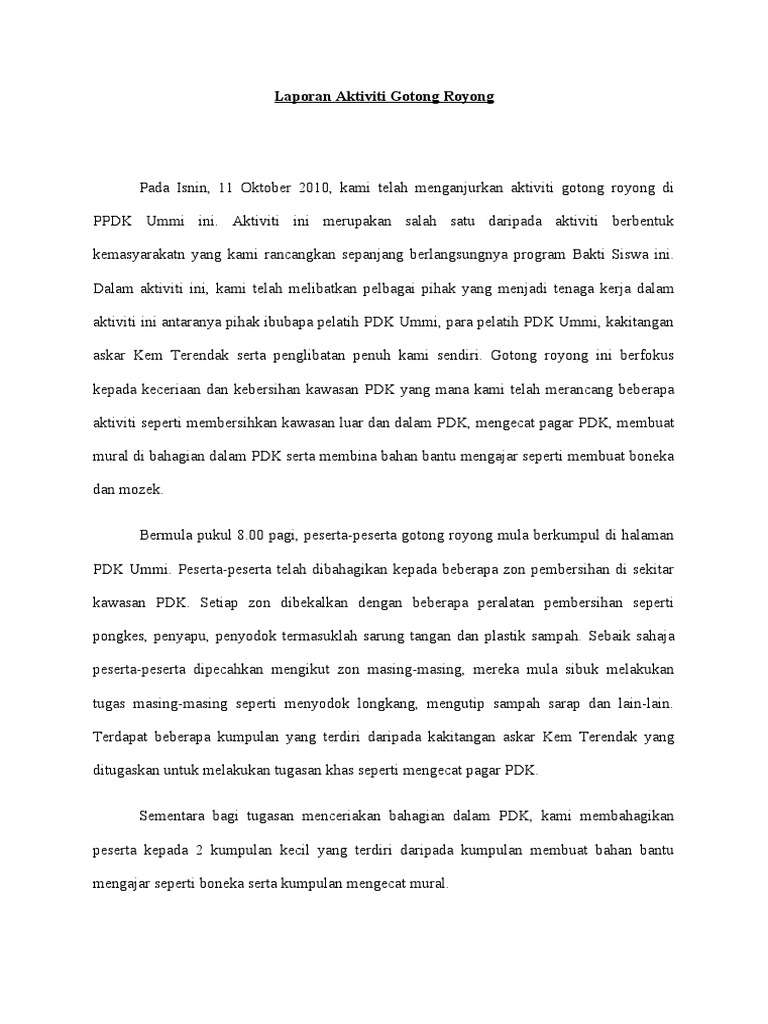 Karangan Laporan Aktiviti Gotong Royong Di Kawasan Perumahan. Semoga bermanfaat dan berguna bagi kalian. Academiaedu is a platform for academics to share research papers.